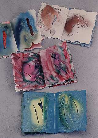 In some "books" there are poems written by the artist and some of them (recent ones) contain texts appropriated from various sources. |