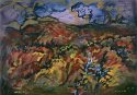 are purple, the sky is azure. Therefore, Miriam's painting blaze with colours,